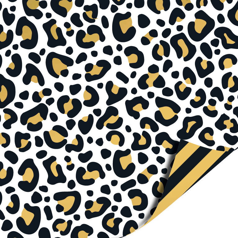 Coated cadeaupapier Leopard white/gold 30cm 100 meter. Perfect te gebruiken voor het inpakken van uw cadeautjes of geschenk.