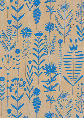 Eco Recycling bruin 70gr cadeaupapier Ischia blauw op rol van 50cm x 200 meter met een stijlvol en eigentijds dessin. Perfect te gebruiken voor het inpakken van je cadeautjes of geschenk.