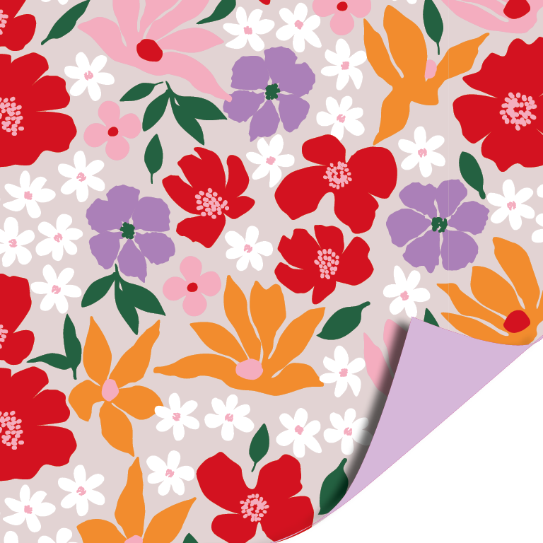 Coated cadeaupapier Retro flower 100 meter. Perfect te gebruiken voor het inpakken van uw cadeautjes of geschenk.