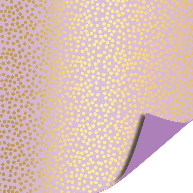 Coated cadeaupapier Minidots purple/gold AZ purple. 40 cm x 100 meter. Perfect te gebruiken voor het inpakken van uw cadeautjes of geschenk.