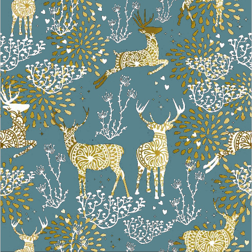Coated cadeaupapier Reindeer Petrol. Keuze uit diverse breedtes: 60 cm x 200 meter. Perfect te gebruiken voor het inpakken van uw cadeautjes of geschenk.
