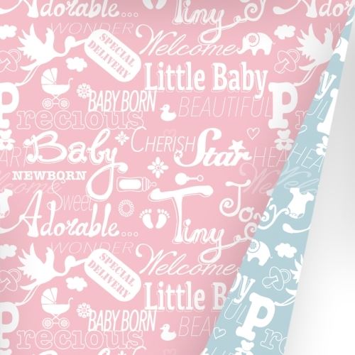 Afbeeldingen van Coated cadeaupapier 30cm 200m - Baby Chalkboard Light Pink/Light Blue