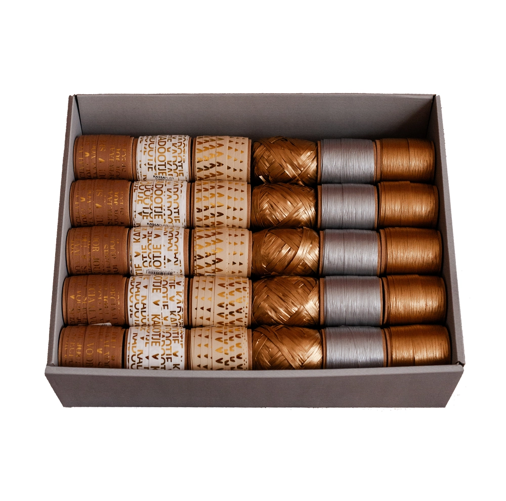 De KP® Displaybox Krullint – All Day straalt stijl en veelzijdigheid uit. Deze complete set bevat 60 rollen van 10 meter lang in warme goud- en bruintinten, aangevuld met een vleugje zilver. Perfect voor het elegant verpakken van cadeaus, bloemstukken of creatieve decoraties. De stevige displaybox biedt een overzichtelijke presentatie en is ideaal voor winkels of de inpaktafel. Met de All Day-collectie geef je ieder cadeau een chique en verfijnde afwerking. Ideaal om een cadeaulabel aan te bevestigen voor een persoonlijke afwerking.