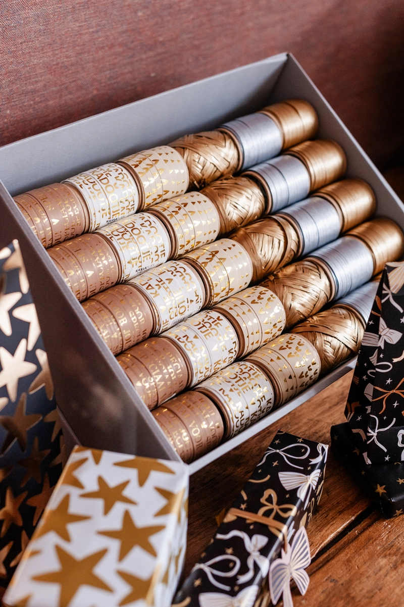 Vier de feestdagen stijlvol met de KP® Displaybox Krullint – Feestdagen. 60 rollen van 10 meter in luxe dessins: goud, zilver, glitter en mooie bedrukte cadeaulinten. De stevige box houdt alles overzichtelijk en het soepel krullende lint geeft cadeaus direct een luxe, feestelijke uitstraling. Ideaal voor kerstpakketten, geschenken of creatieve decoraties. Ideaal om een cadeaulabel aan te bevestigen voor een persoonlijke afwerking.