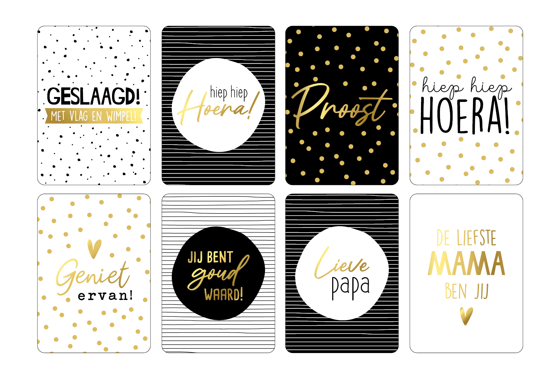 Vernieuwend design op stevig, slijtvast en helder wit karton. In deze wenskaartencollectie (ook wel ansichtkaarten genoemd) presenteren wij u unieke dessins, geschikt voor ieder moment.