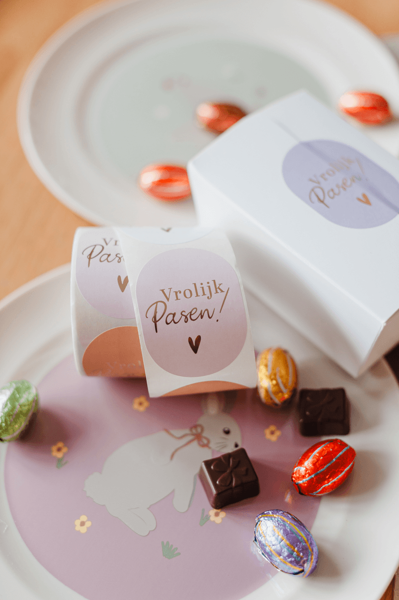 Deze lieve 'Vrolijk Pasen' stickers geven een cadeautje een extra persoonlijk tintje. Ideaal als sluitsticker of om kleine geschenken liefdevol te presenteren voor Pasen.