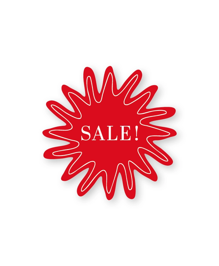 Deze 30x30cm, felle Sale Splash sticker in rood rekt meteen de aandacht van voorbijgangers. Ideaal voor promoties en acties in winkels of etalages. Het speelse ontwerp geeft een vrolijke uitstraling en laat je sale direct opvallen. Zo combineer je kleur, actie en zichtbaarheid in één sticker.