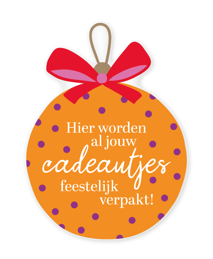 Opdruk:Hier worden al jouw cadeautjes feestelijk verpakt!