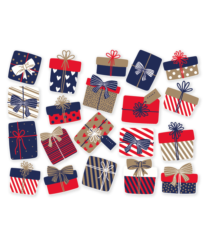 Breng een vrolijke en feestelijke sfeer in huis met dit raamstickervel vol kleurrijke cadeautjes, in rood- en blauwtinten. De verschillende formaten zorgen voor een speels geheel, perfect om je ramen helemaal in de feeststemming te brengen. De EasyDot-raamstickers zijn eenvoudig aan te brengen, herpositioneerbaar en herbruikbaar. Na gebruik verwijder je ze moeiteloos, zonder lijmresten achter te laten.