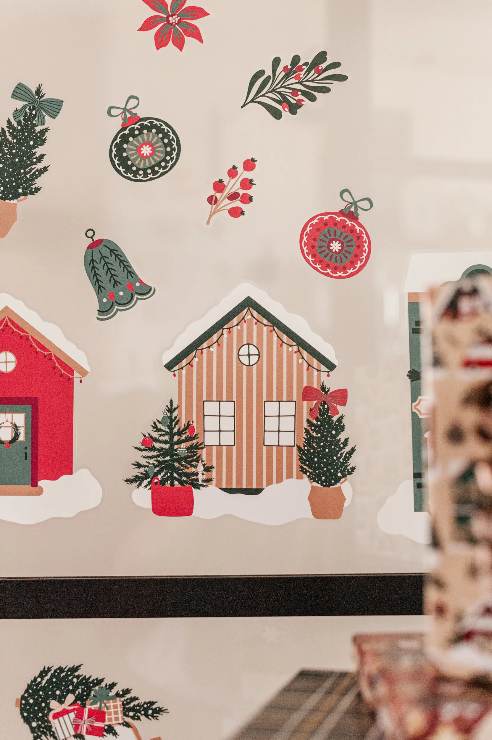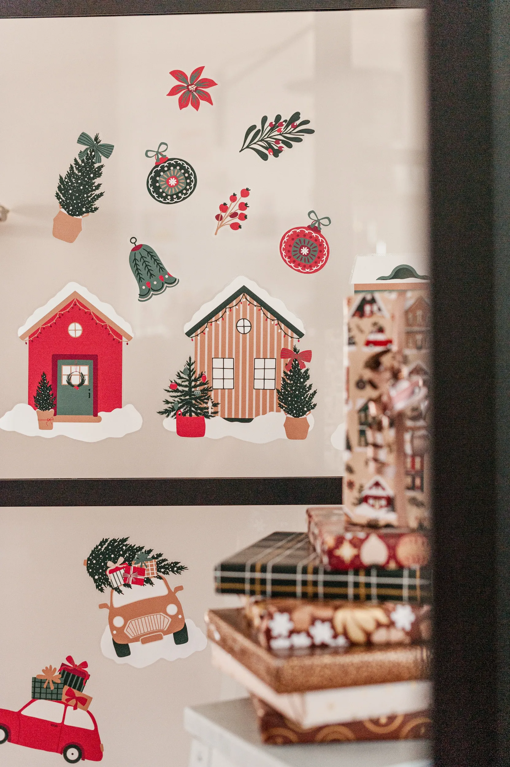 Breng je ramen tot leven met deze sfeervolle raamstickers vol kersthuisjes, auto’s met kerstbomen en andere winterse details. Perfect om een gezellige en warme kerstsfeer te creëren in etalages, woonkamers of kantoren. De stickers worden geleverd op één vel, zodat je ze naar wens kunt verdelen en combineren. Gemaakt van EasyDot-materiaal: eenvoudig aan te brengen, herpositioneerbaar en herbruikbaar. Na gebruik verwijder je de sticker moeiteloos zonder lijmresten.