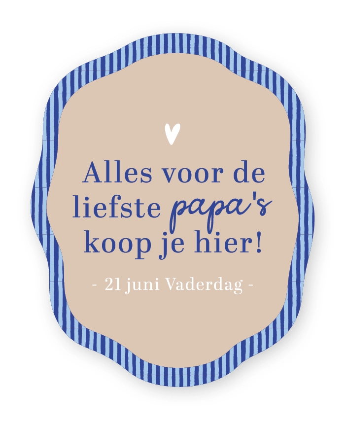 Laat klanten weten waar ze de leukste Vaderdagcadeaus kunnen vinden met deze etalage-sticker. Met de tekst “Alles voor de liefste papa’s koop je hier” springt jouw winkel er direct uit. Ideaal voor etalages of winkelruiten om de aandacht op Vaderdagcadeaus te vestigen.