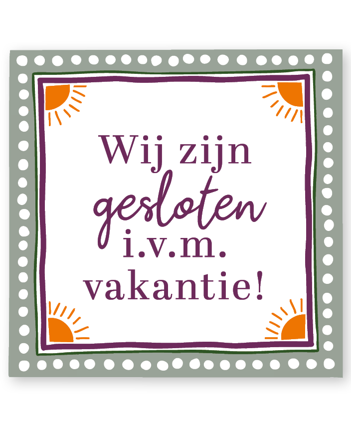 Laat klanten duidelijk weten wanneer je gesloten bent met deze praktische sticker. Ideaal voor ramen van winkels, kantoren of cafés tijdens de zomervakantie. Het heldere ontwerp maakt de boodschap meteen duidelijk. Zo blijft alles professioneel en sfeervol, ook tijdens sluitingstijden.