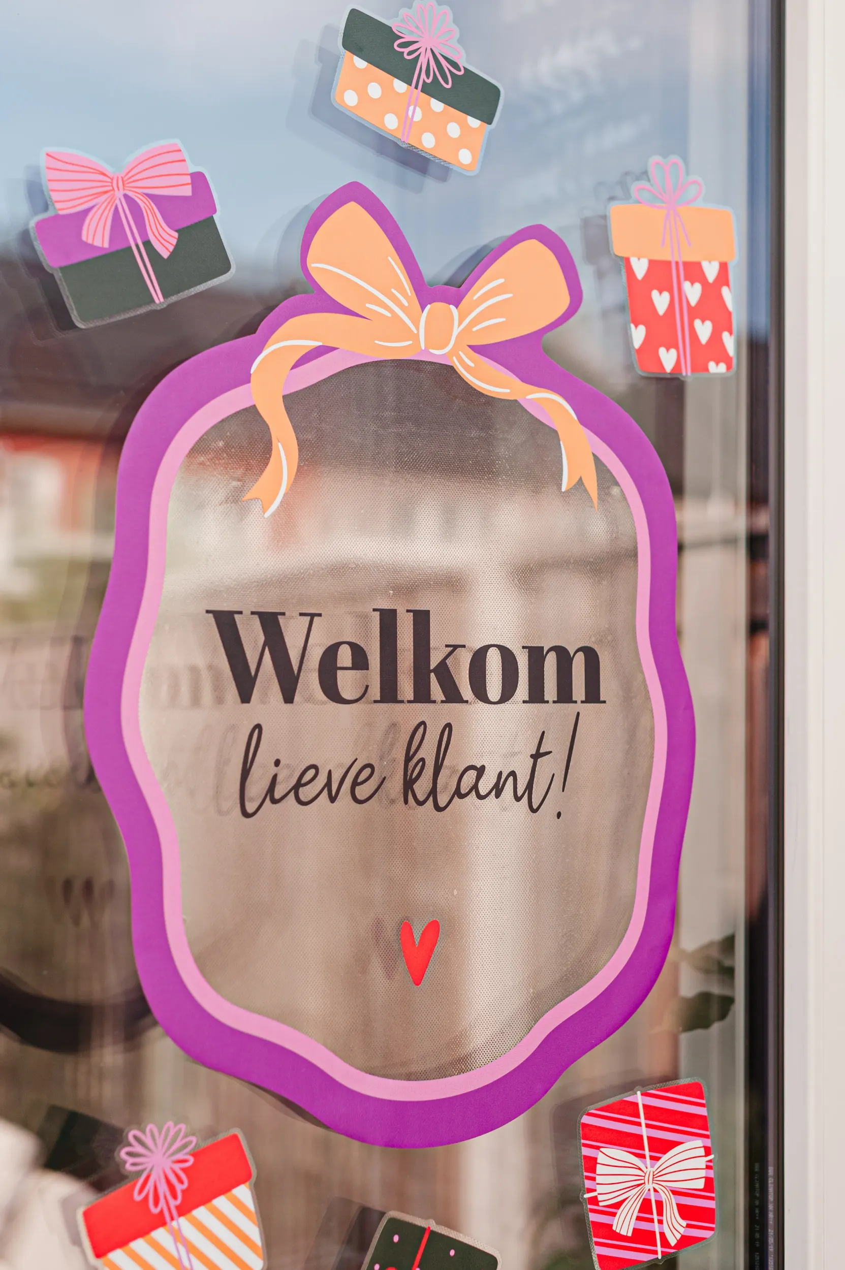 Een warme begroeting voor elke winkel. Deze raamsticker heet je bezoekers welkom en laat je ramen tegelijk stralen. Dankzij de transparante achtergrond zijn alleen de tekst en de sierlijke omlijning zichtbaar. De EasyDot-sticker is gemakkelijk te plaatsen, herpositioneerbaar en later zonder sporen te verwijderen. Zo zorg je voor een uitnodigende entree die indruk maakt.