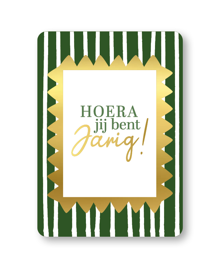 Wenskaarten A6: Hoera jij bent jarig (groen/goud)